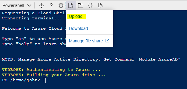 - Logon to Cloud Shell in the Azure Portal by clicking on the little Cloud Shell icon in the top right of your screen.