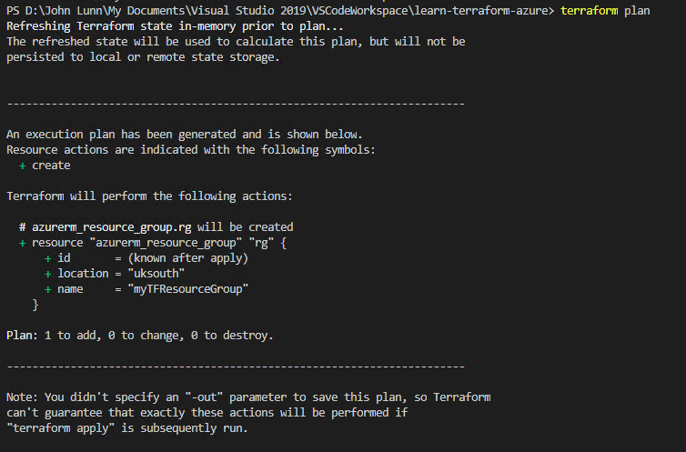 Here we can see the ‘Plan’ command has outputted back to us what will be created.