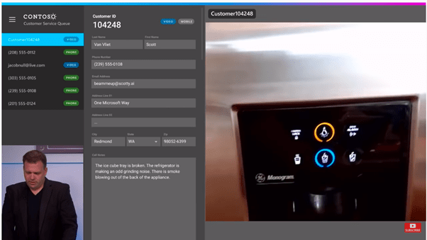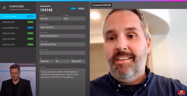 Acting as the service agent, Jeremy can see the customer (Scott) in a bespoke application where notes and other information about the product could be displayed and shown to the agent in order to help the customer: