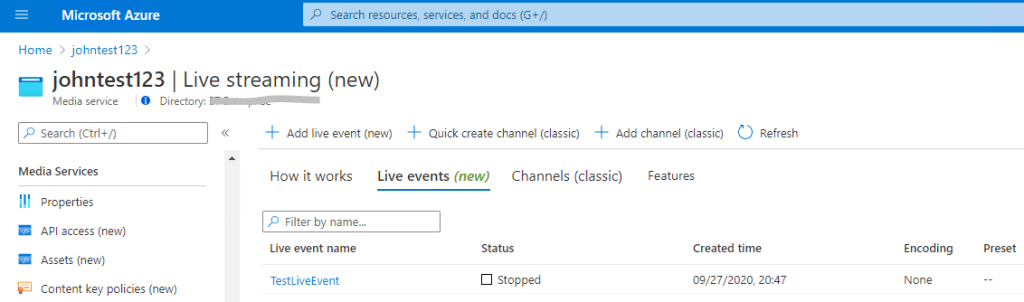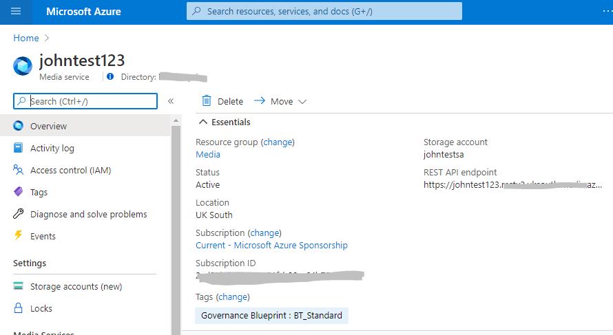 Lets firstly create an instance in our Azure Subscription of AMS:
