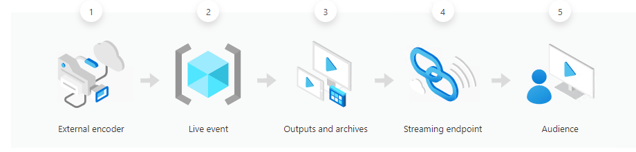 The above schematic can be viewed in the following way……. lets say that the signal into the Live Event is coming from your Laptop with OBS installed and the streaming endpoint is the function that our OBS connects into, that is what we can set up in AMS.