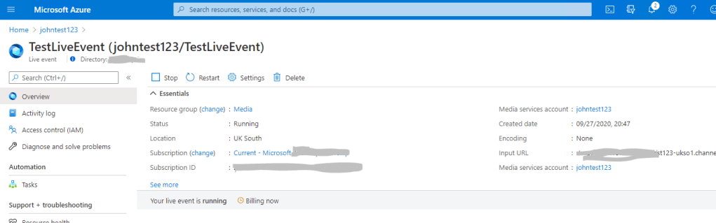 Clearly cost will be the obvious point to note when it comes to running live streams in Azure, and clearly if YouTube and Twitch suit your needs then that’s great. However, hopefully you will have a better understanding how you can build your streaming endpoints into Azure and utilise other Azure features to conduct video analysis, over a secure using DRM service, or paid for services, or simply start up your own streaming business and offering Video on Demand! I hope you have found this article useful.