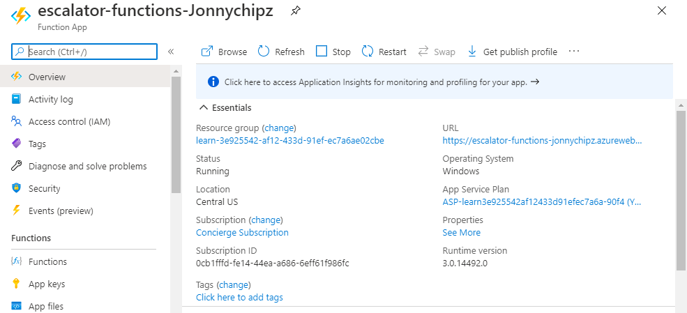 Here is our new Function App: