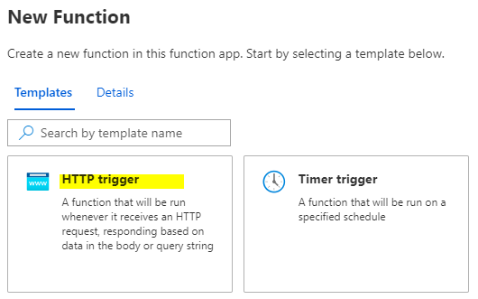 Under New Funciton, we select HTTP Trigger: