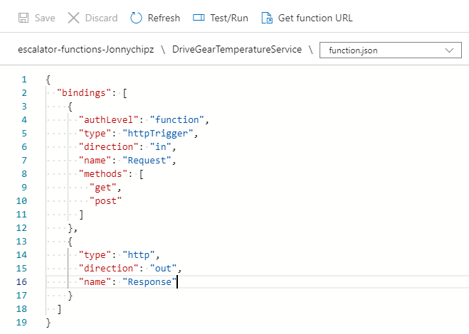 If we check for the ‘function.json’ we can see our Binding: