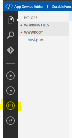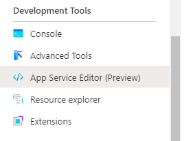 From the Azure Portal, we select our Funcitons App, and select App Service Editor under the Development Tools menu#: