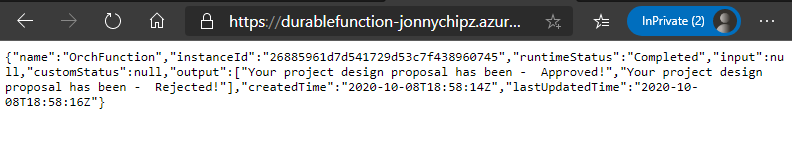 There we have it, a durable function running through the workflow of an approval process.