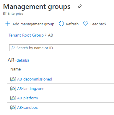 Then created our Management Group Structure for our Fictitious Company: