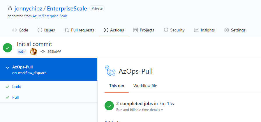 Created my Azure Credentials Logon in my Github and ran the automated Pull request from my Azure Tenant: