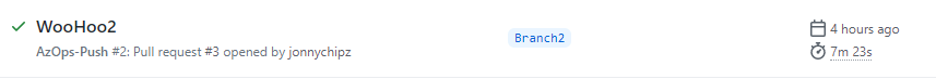 Then finally created a Pull Request to merge Branch2 into Main, which inturn triggers off an automated Push of the AZState into my Azure Tenant!!!
