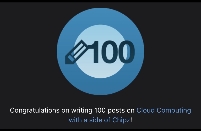 But I didn’t know how far I would get, I created my GitHub Repo, I was bought a load of books for my birthday in August, so I made a start. I think my first official 100 Days post was on 25th August: Day[1/100] #100DaysOfCloud – Jonnychipz is giving it a whirl! – Cloud Computing with a side of Chipz