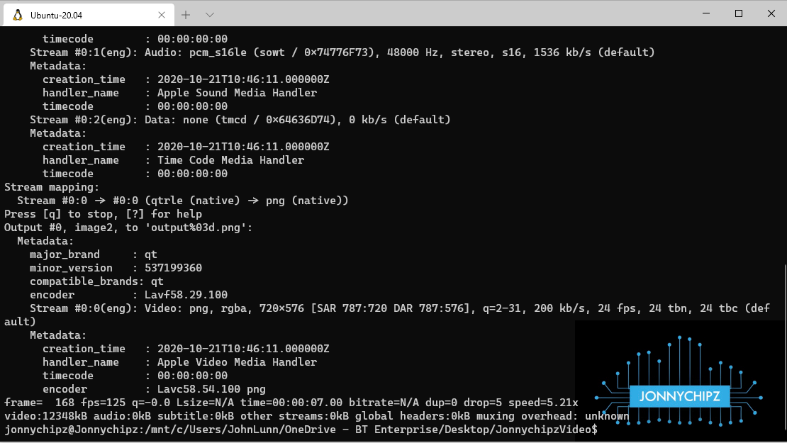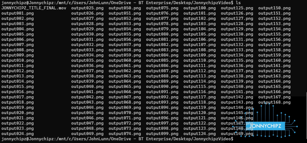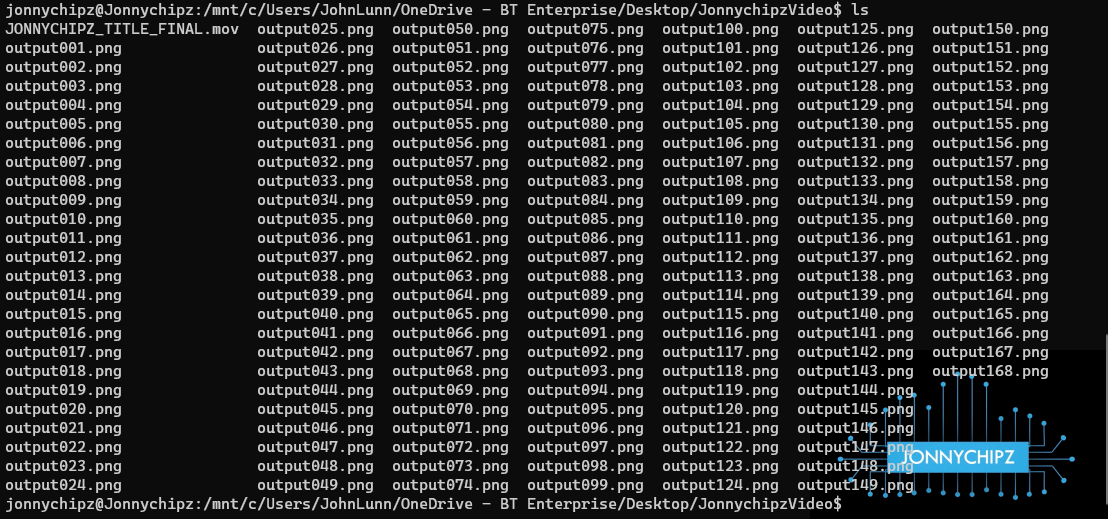 Ok so that’s cool, we have our MOV file in the folder… next we run this helpful little command that will extract every frame and create an PNG image from it!
