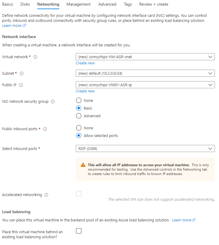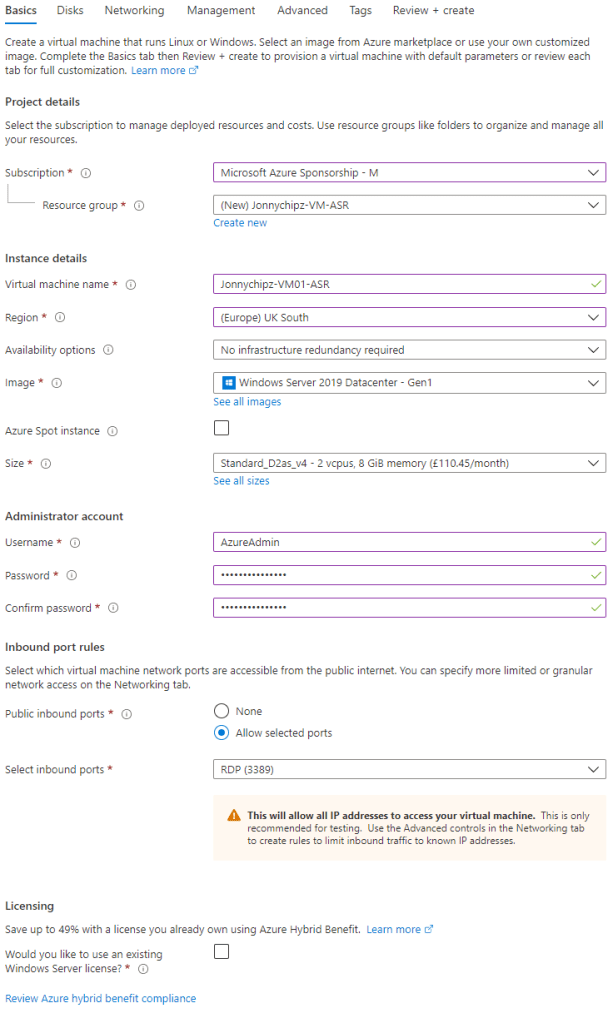 This will save having to enable ASR as a separate task once you have created your VM.