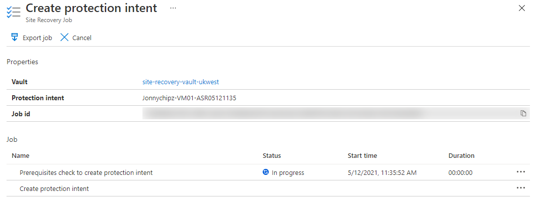 The Site Recovery Job status can then be checked: