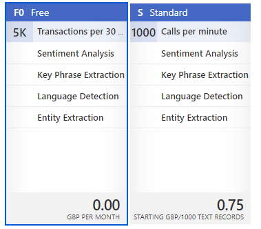 S – Standard, a maximum of 1000 calls per minute costing £0.75GBP per 1000 text records.