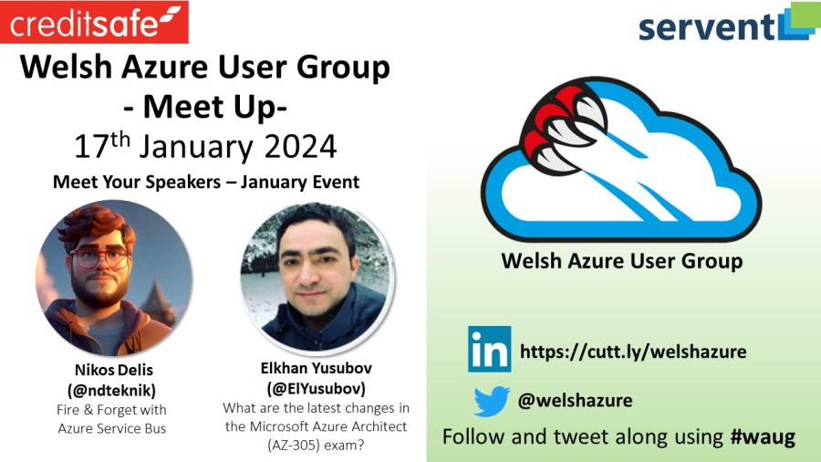 It was the day of our Welsh Azure User Group #WAUG January 2024 meet up and we had yet another two amazing speakers join us. We were joined by Nikos Delis to discuss the Azure Service Bus and then we took a look at the AZ-305 Azure Architect Exam updates with Elkhan Yusubov. Huge thank …